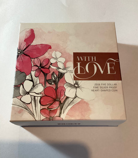 2016 $5 With Love Fine Silver Proof Heart Shaped Coin.