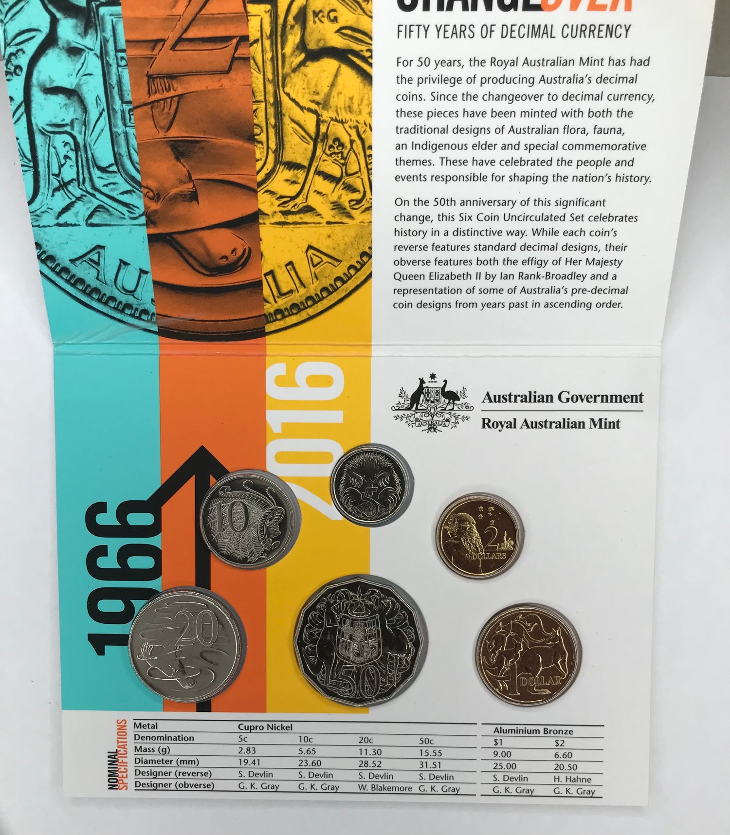 2016 Uncirculated Set. The Changeover. Fifty Years of Decimal Currency. World Money Fair Release