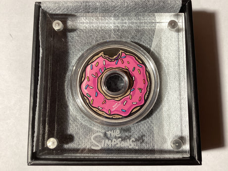 2019 $1 1oz Silver Proof Coloured Coin. The Simpsons. Donut.
