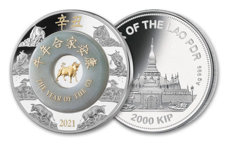 2021 Year of the Ox 2oz Silver Coin with Jade – Laos