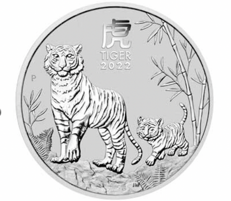 2022 1 oz Perth Mint Year of the Tiger Australian Lunar Bullion Silver Coin