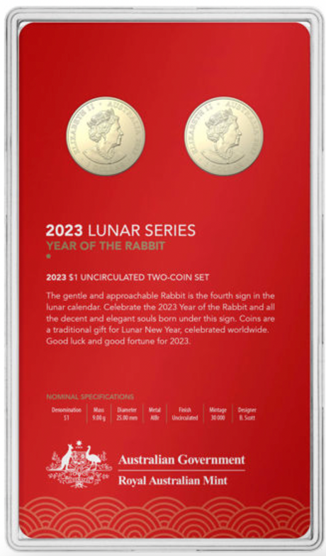 2023 Lunar Year of the Rabbit - $1 Uncirculated 2 coin set