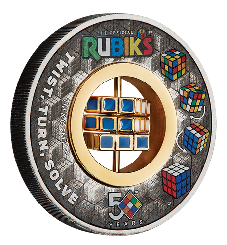 Rubik’s™ Cube 50th Anniversary 2024 2oz Silver Antiqued Coloured Coin
