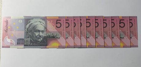 2001 $5 First Prefix Banknote. Uncirculated. Run of 10. R219F