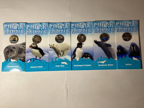 2013 $1 Pad Printed Coloured Coins. Polar Animals. Complete Set.