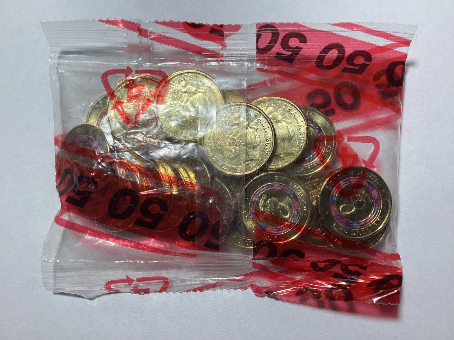 This security bag features 25 Possum Magic Purple Hush coins in mint state condition.