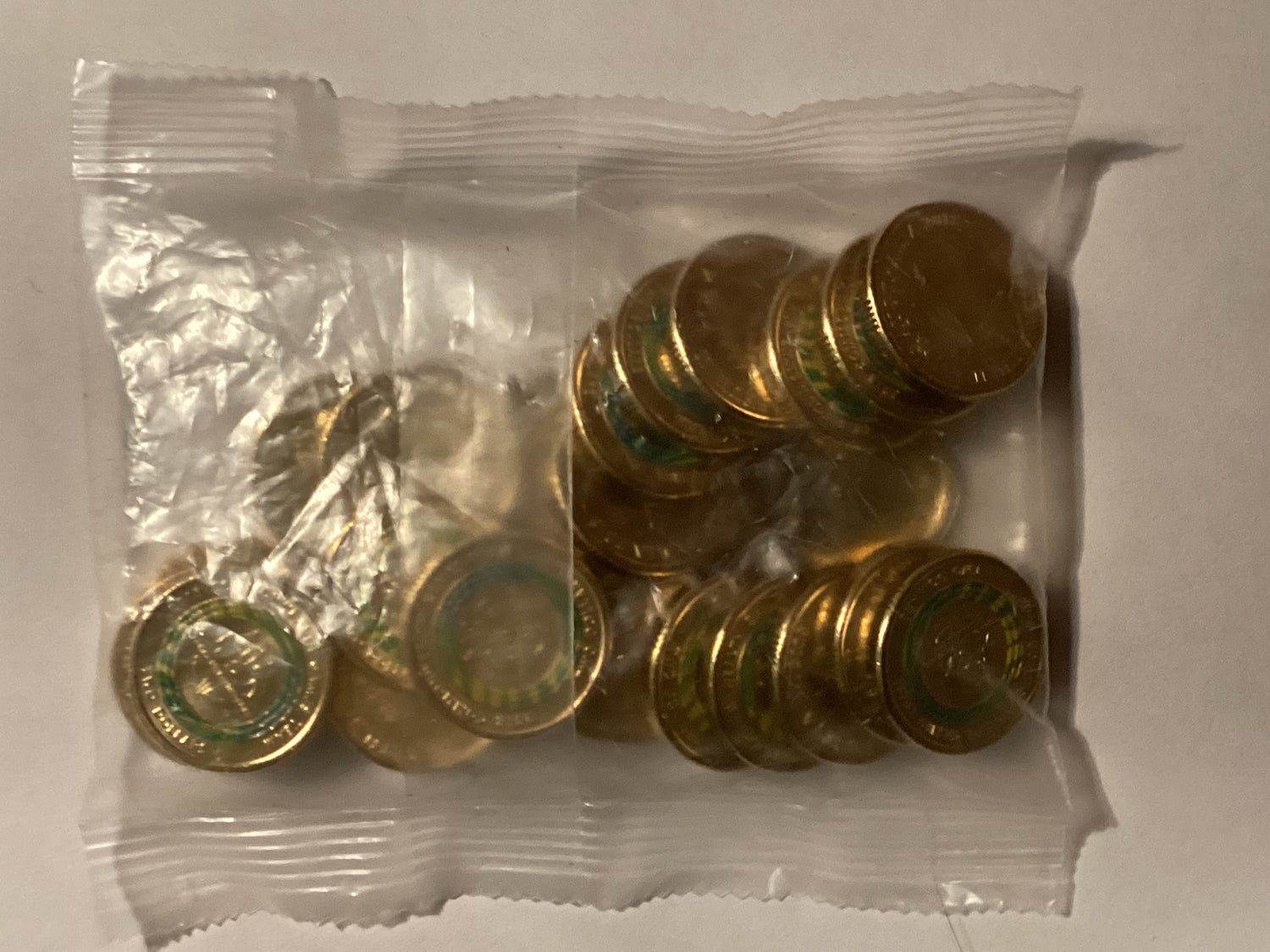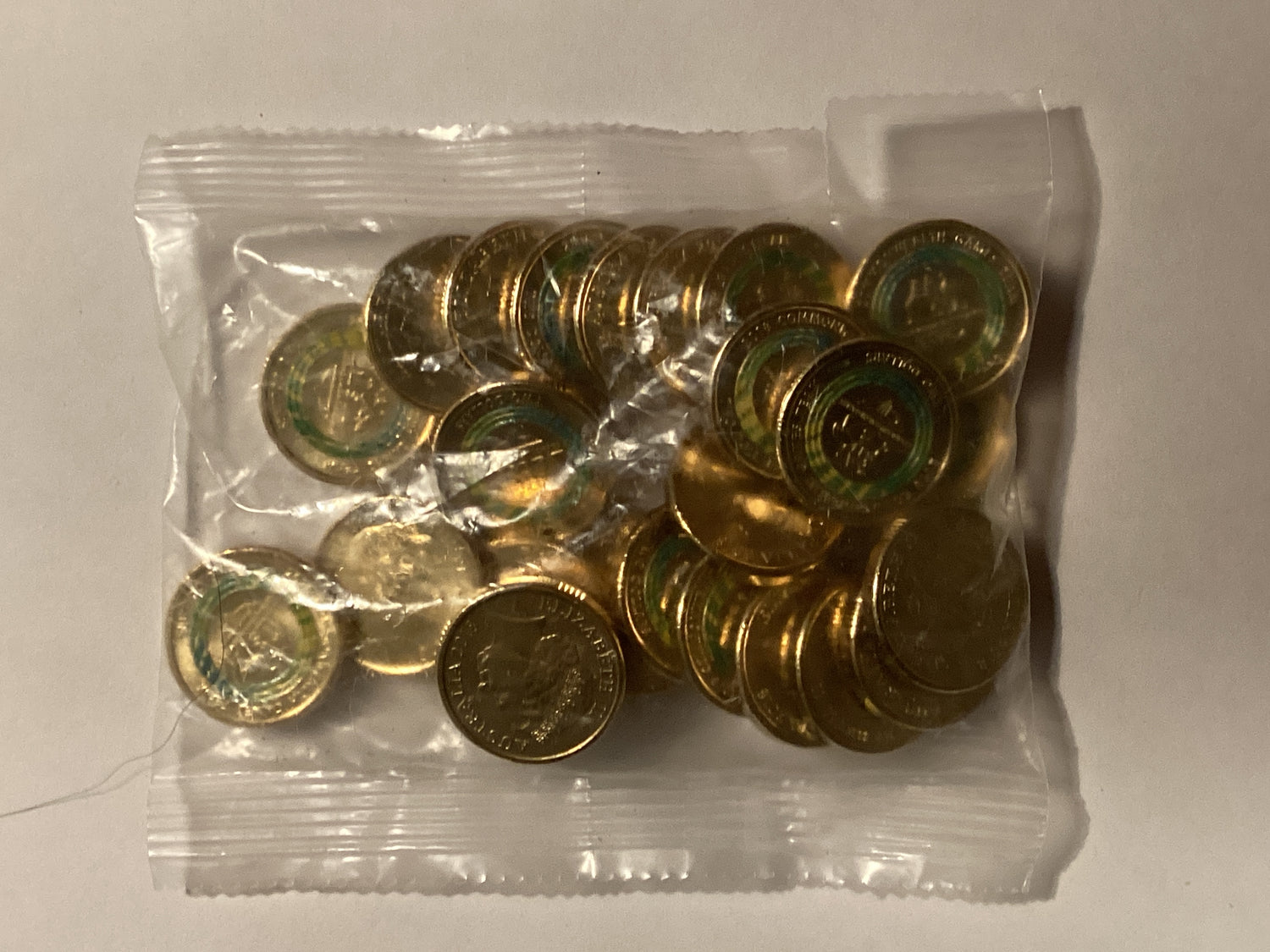 This security bag contains 25 Commonwealth Games, Coat of Arms $2 coins.