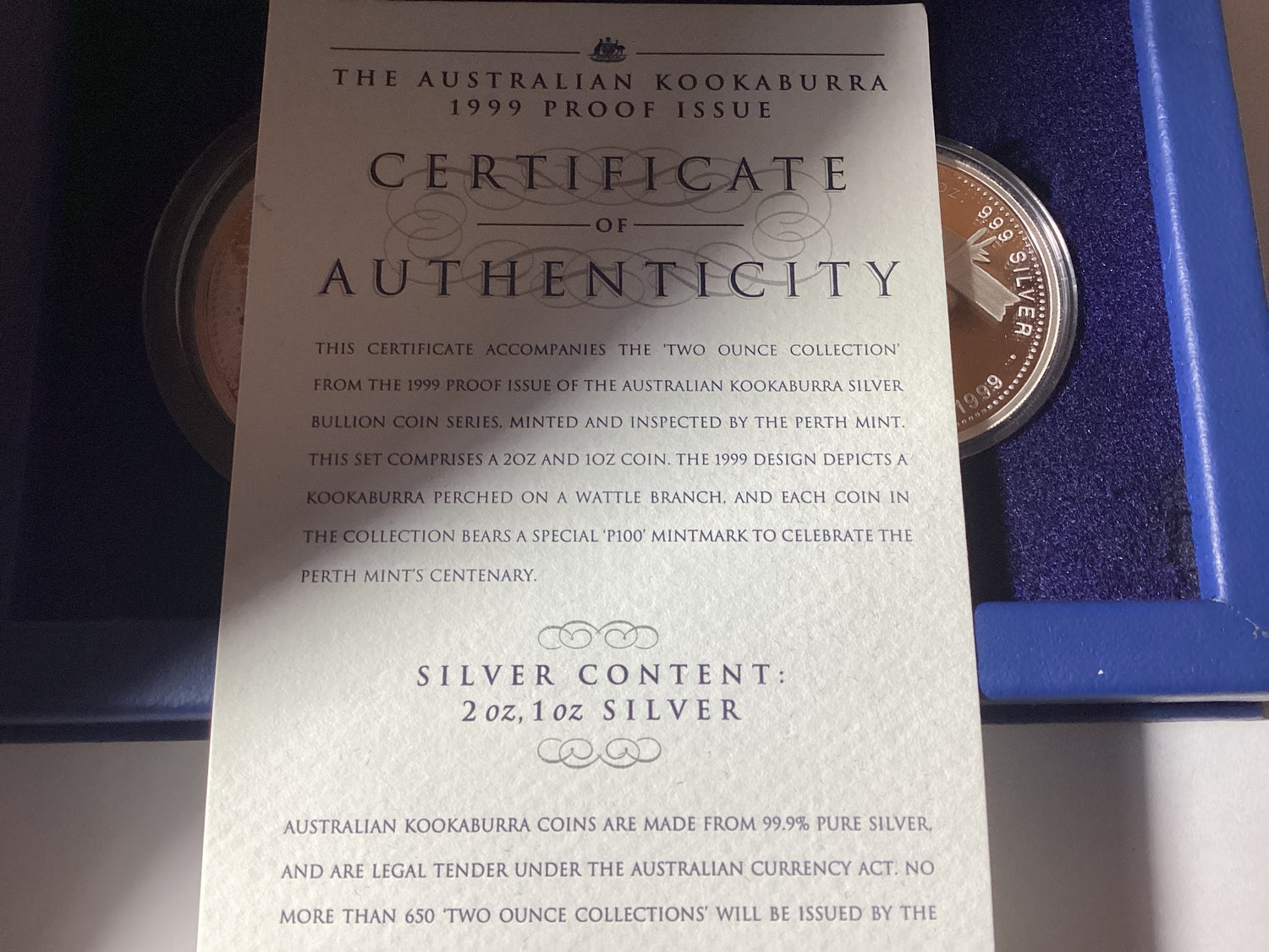1999 Australian Proof Kookaburra Silver Coin Series. Two Ounce Collection.