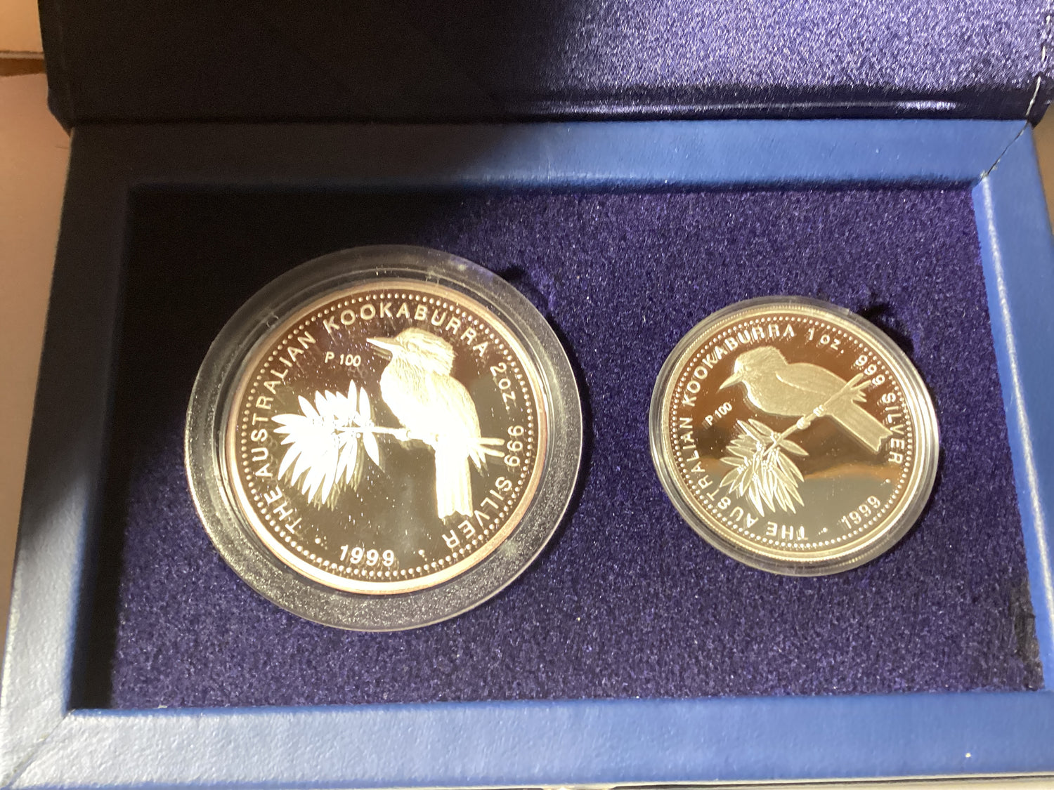 Released in 1999, these two coin sets feature both a 2oz and 1oz silver kookaburra. These coins also feature a ‘P100’ mintmark, celebrating the centenary of the Perth Mint.