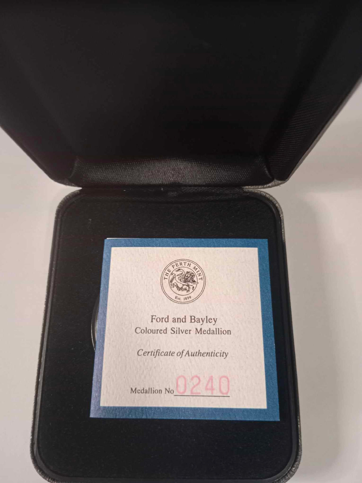1999 Ford and Bayley Coloured Silver Medallion. is backordered and will ship as soon as it is back in stock.