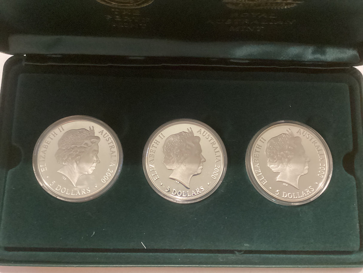 The 2000 Sydney Olympic Coin Collection, Silver 'Host City' Set, celebrates the Sydney 2000 Olympic Games. This set includes silver coins that depict various aspects of the Olympic experience, from the spirit of competition to the iconic venues in Sydney. Each coin is struck in fine silver with a proof finish, ensuring a high level of detail and clarity in the designs. This set is a commemorative piece that reflects the global significance of the Olympic Games and Australia's role as host.