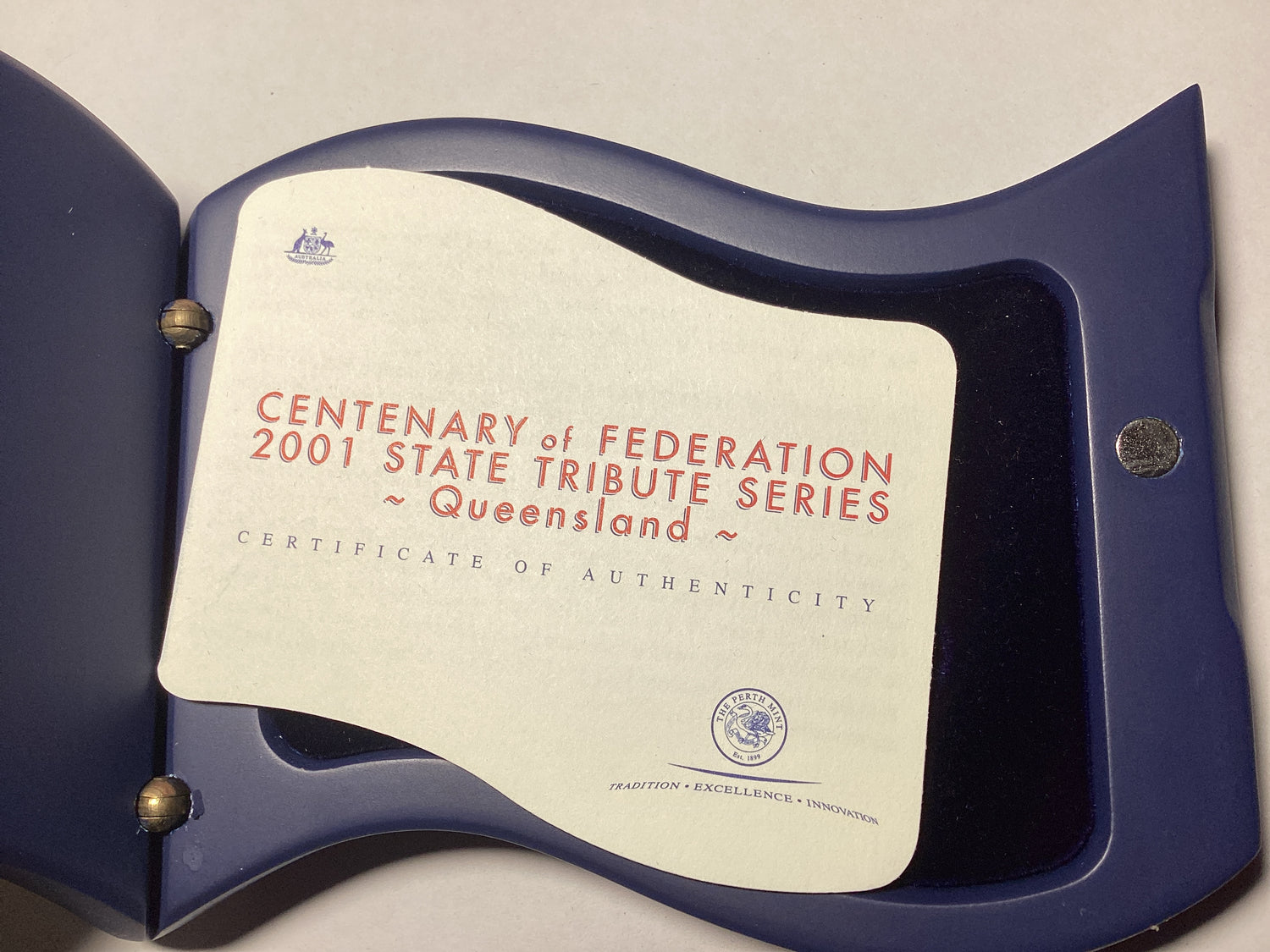 Celebrate the rich heritage of Queensland with the 2001 $1 Centenary of Federation State Tribute Series Silver Proof Coin.