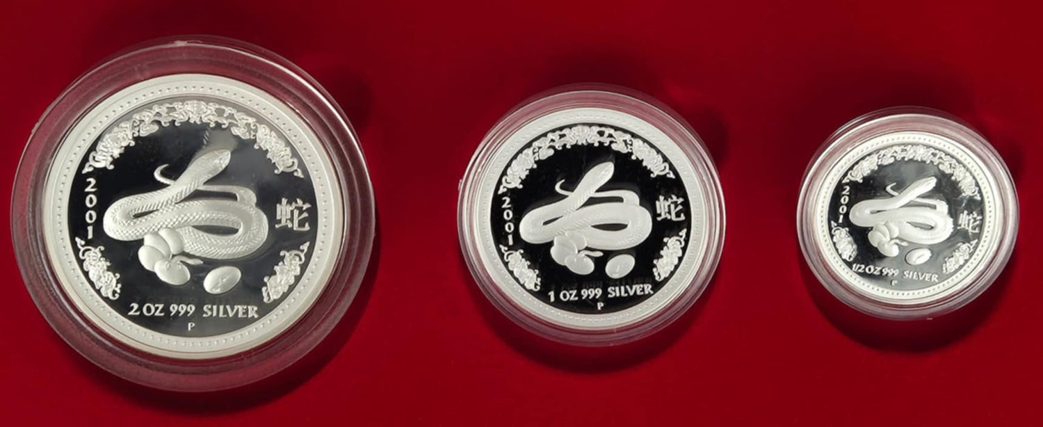 2001 Australian Lunar Silver Proof Three-Coin Set – Year of the Snake