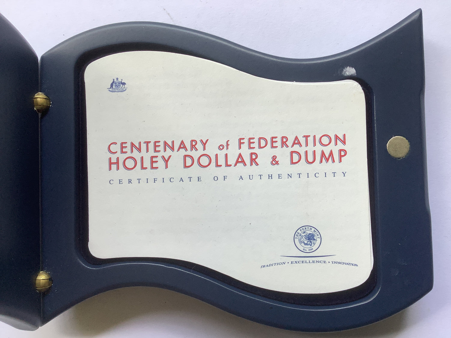 Celebrate a century of unity with the 2001 Centenary of Federation Holey Dollar and Dump Silver Proof Coin.