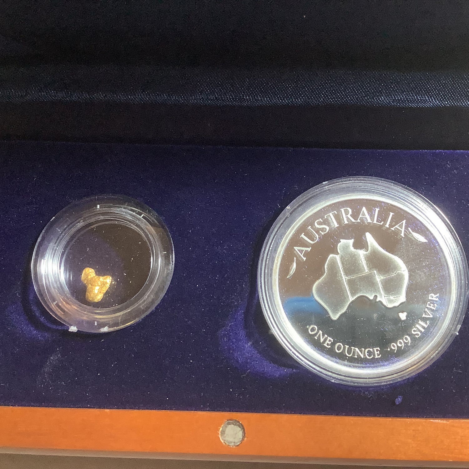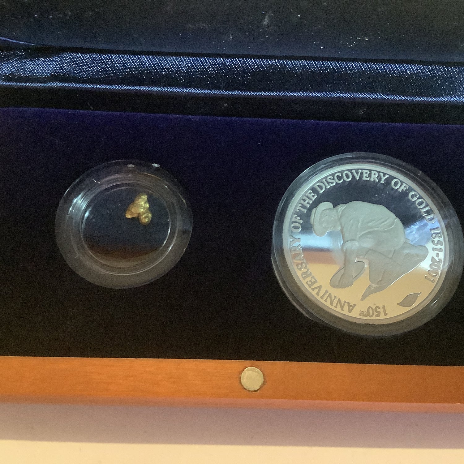 Released to celebrate the 150th anniversary of payable gold in Australia, this set features a silver medallion and a one-gram gold nugget.