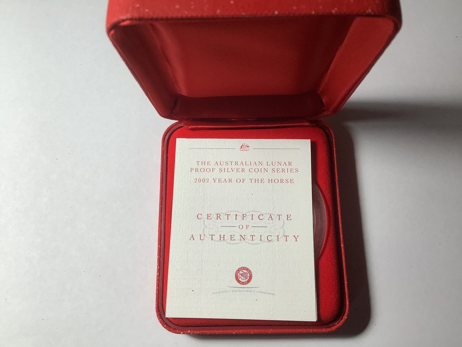 2002 $2 Australian Proof Lunar Silver Coin Series. Year of the Horse 2-ounce silver coin. is backordered and will ship as soon as it is back in stock.