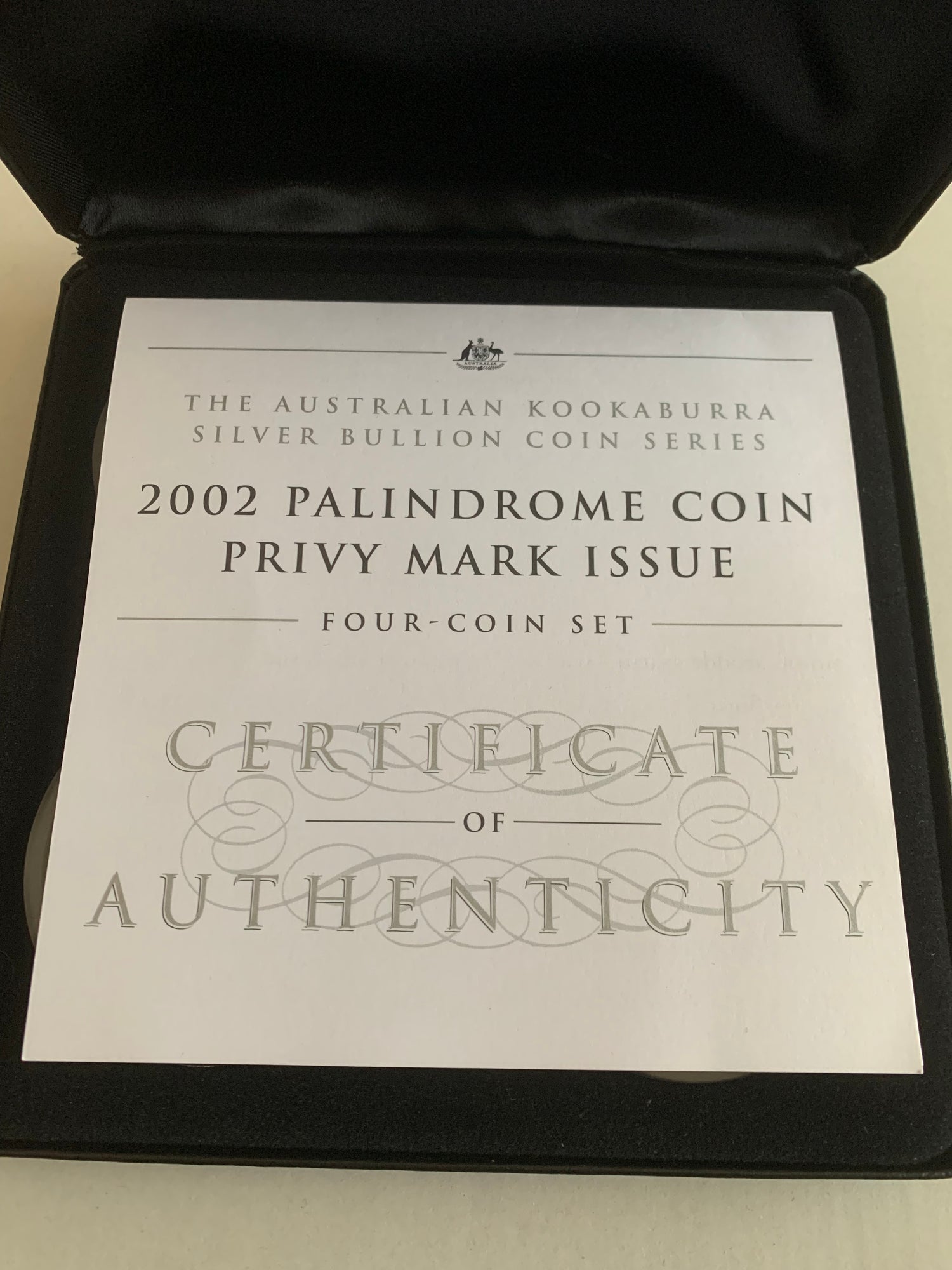 2002 PALINDROME PRIVY MARK SET - 4 x 2oz SILVER PROOF COINS is backordered and will ship as soon as it is back in stock.