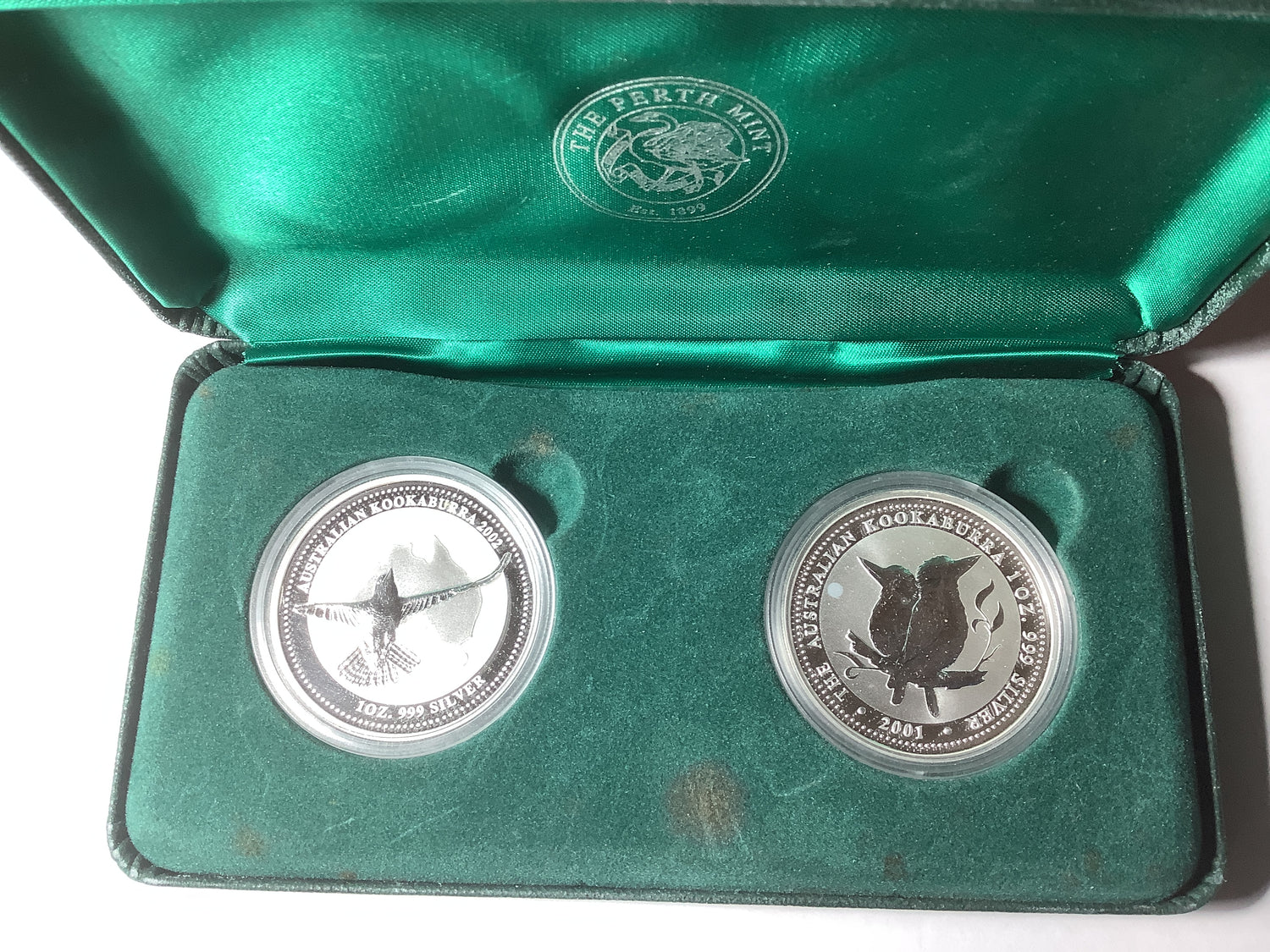 This set was released by the Perth Mint in 2002 and contains both the 2001 and 2002 silver 1-ounce Australian Kookaburras.
