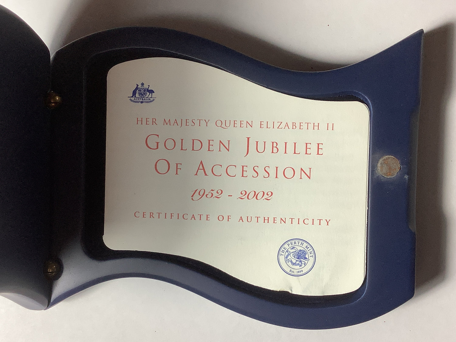 The 2002 Queen Elizabeth II Golden Jubilee 1 Ounce Silver Proof Coin commemorates Her Majesty's 50-year reign with elegance and prestige.