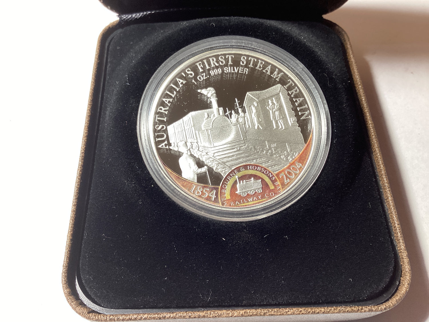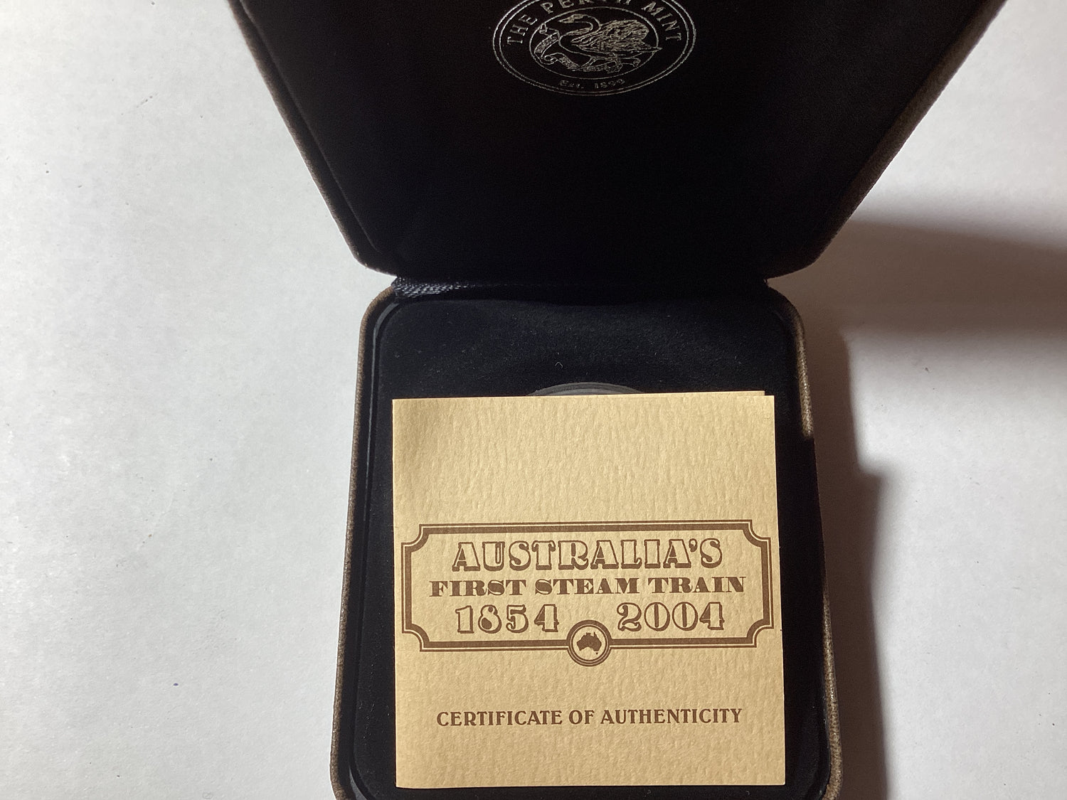 2004 Australia’s First Steam Trains 150th Anniversary. 1854-2004. 1oz Silver Proof Coin.