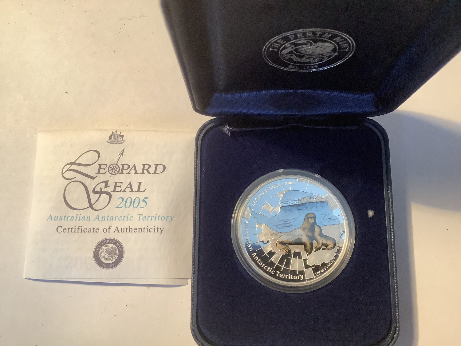 The 2005 $1 Silver Proof Coin from the Australian Antarctic Series features the impressive Leopard Seal in stunning detail.