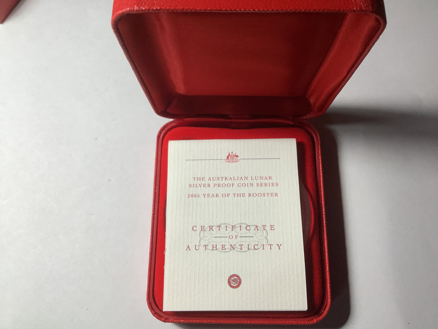 2005 $2 Australian Proof Lunar Silver Coin Series. Year of the Rooster 2-ounce Silver Coin. is backordered and will ship as soon as it is back in stock.