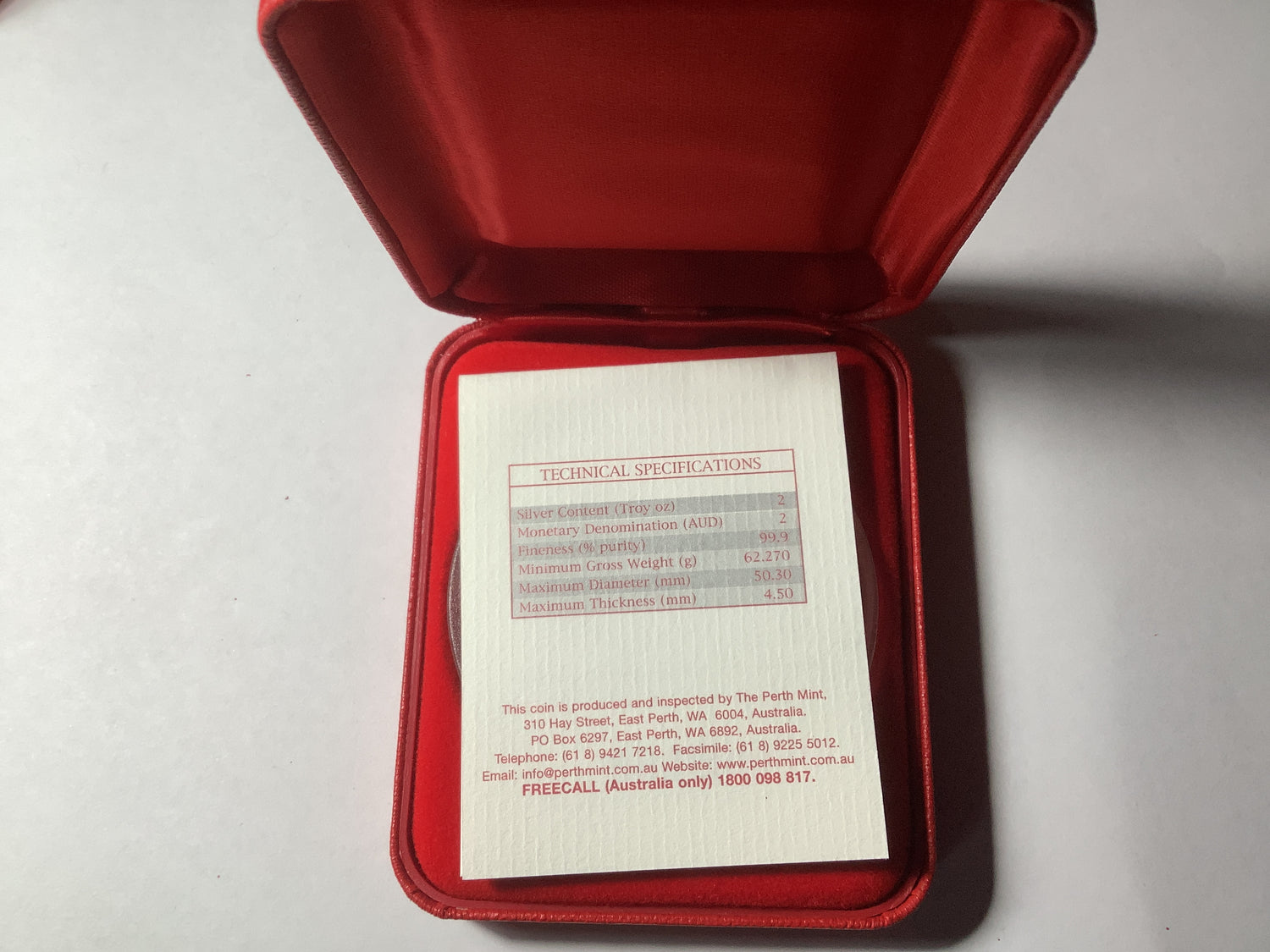 2005 $2 Australian Proof Lunar Silver Coin Series. Year of the Rooster 2-ounce Silver Coin.