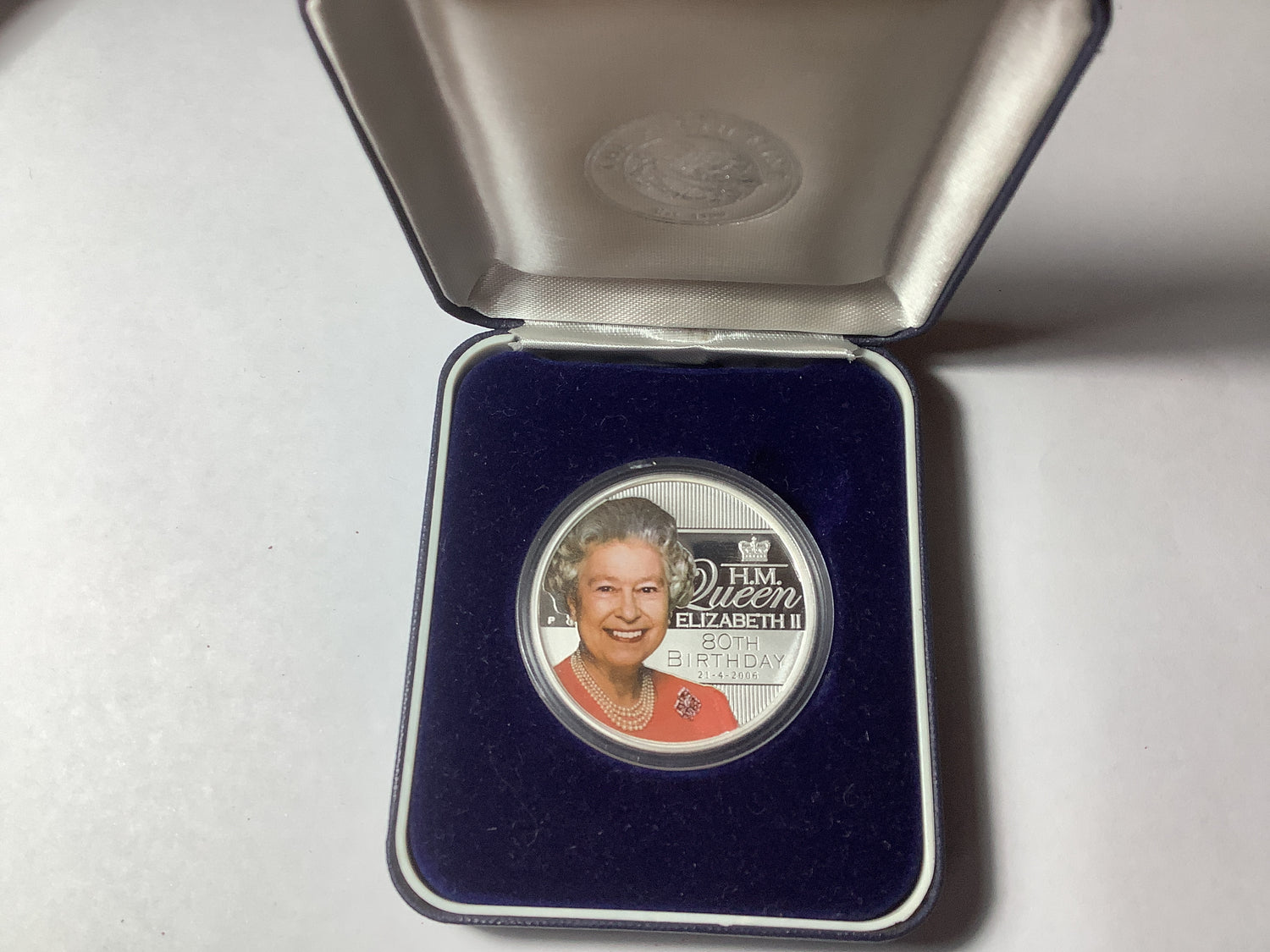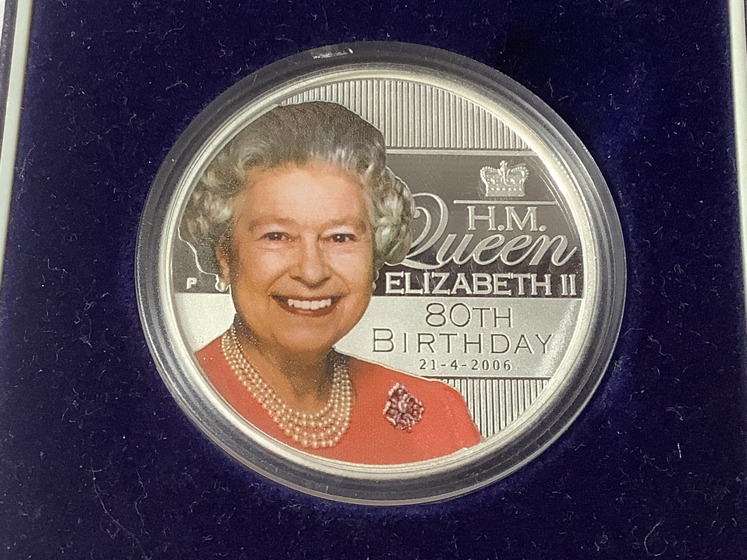 Struck in one ounce of fine silver, this coin features a coloured portrait of Her Majesty Queen Elizabeth II to mark her 80th birthday.