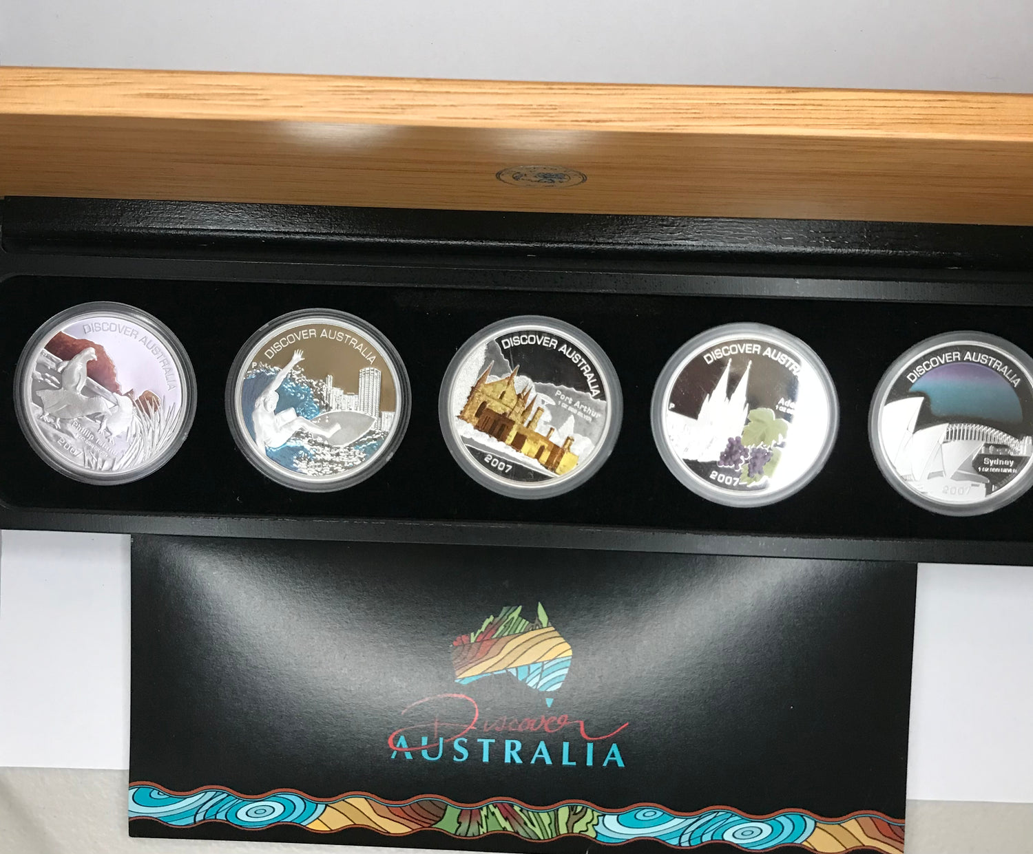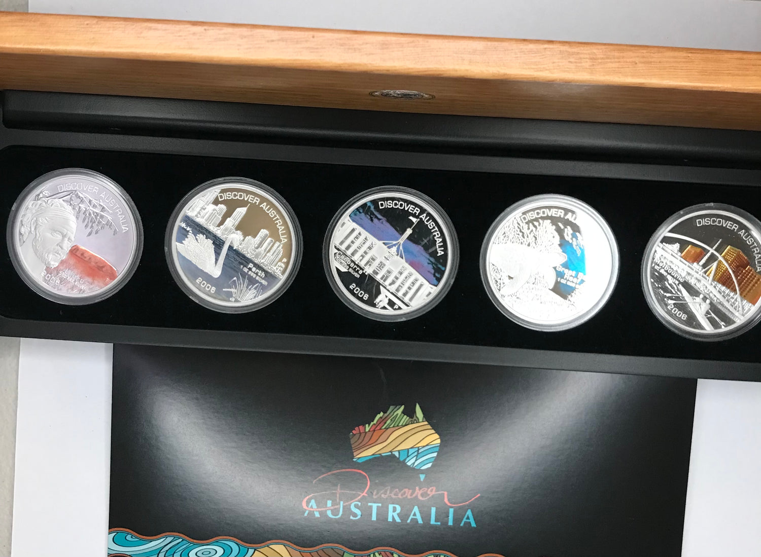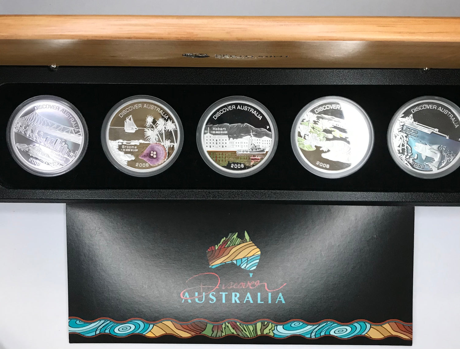 This 15-coin-proof silver set features the coins released as part of the discovery Australia series released from 2006-2008.