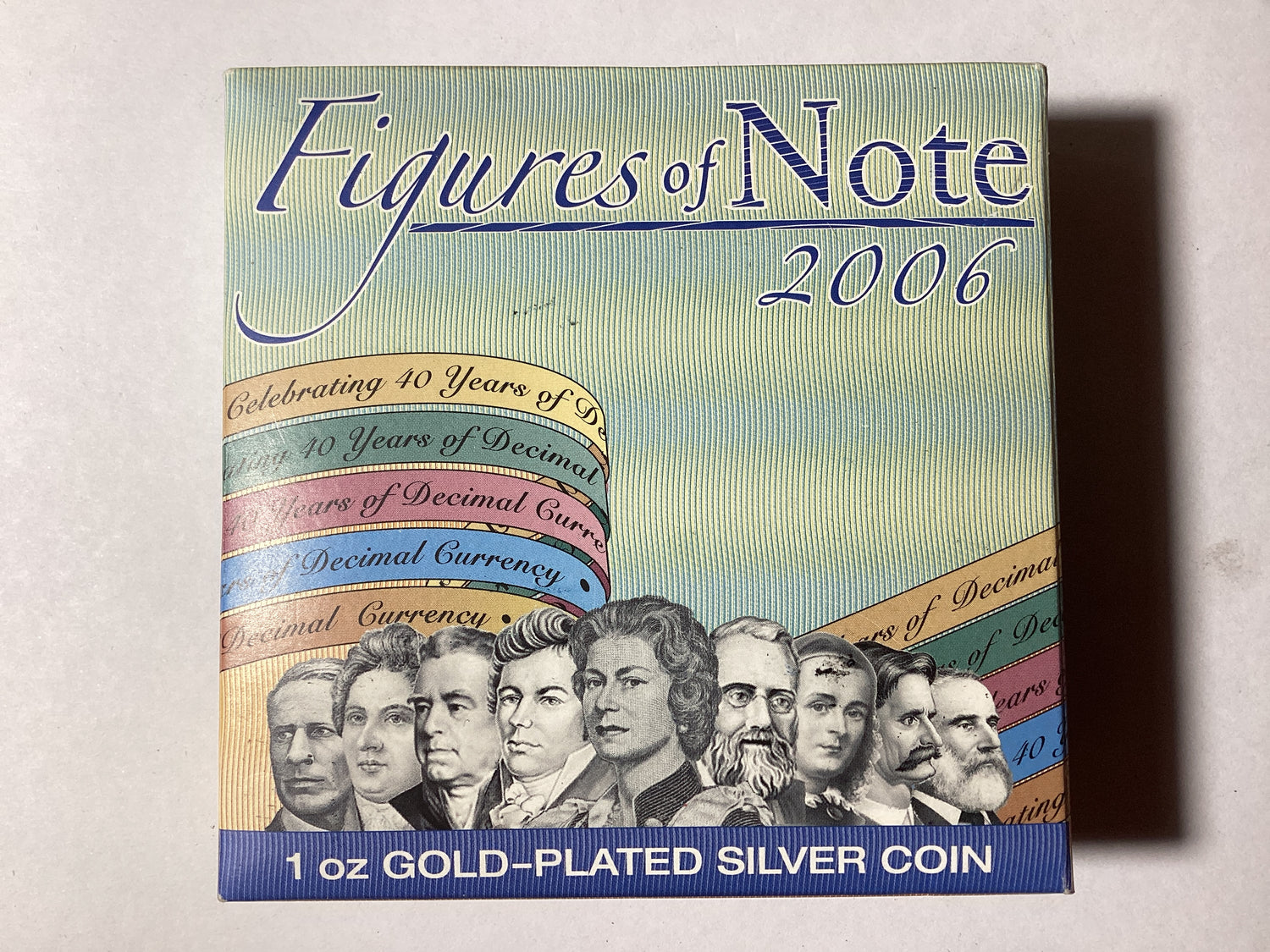 The 2006 "Figures on Notes" 1oz Silver Gold-Plated Proof Coin is a tribute to the people who's portraits are found on Australian banknotes.