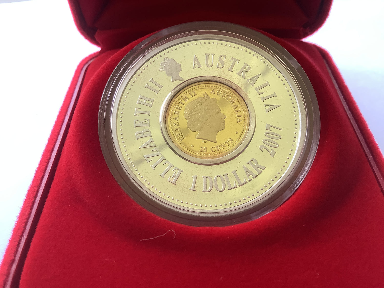 2007 Lunar Holey Dollar and Dump Set. 1 Ounce Silver Proof Coin is backordered and will ship as soon as it is back in stock.