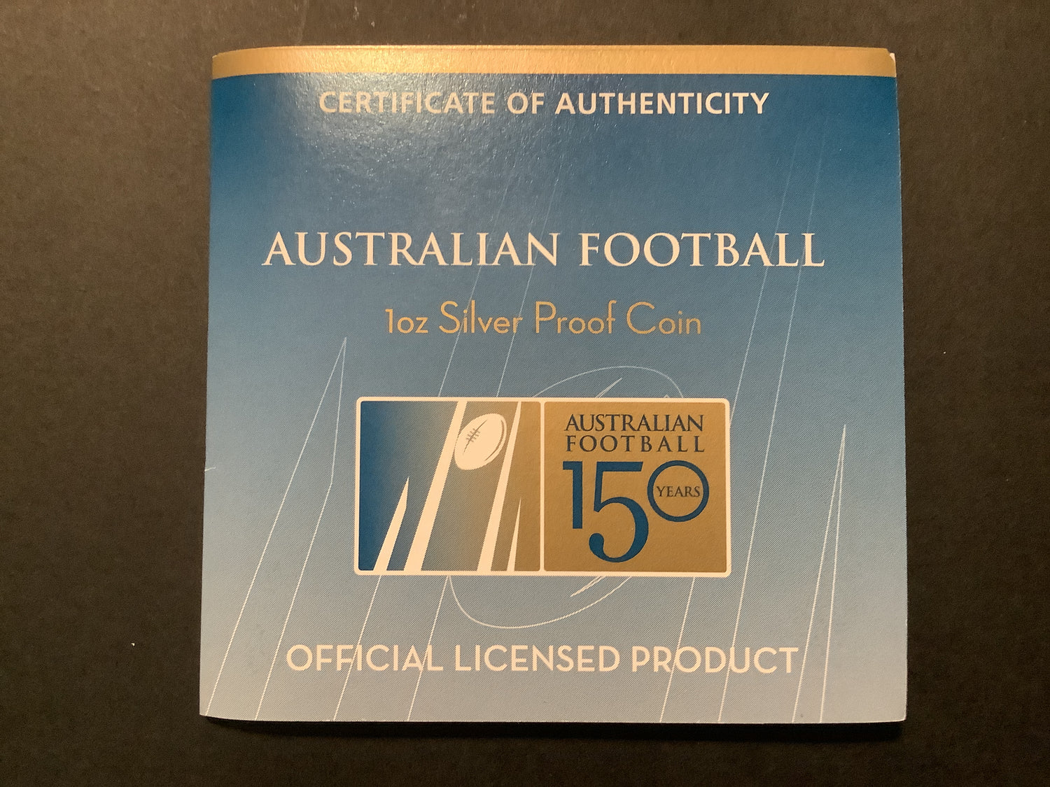 2008 $1 Australian Football 150 Years 1oz Silver Proof Coin.