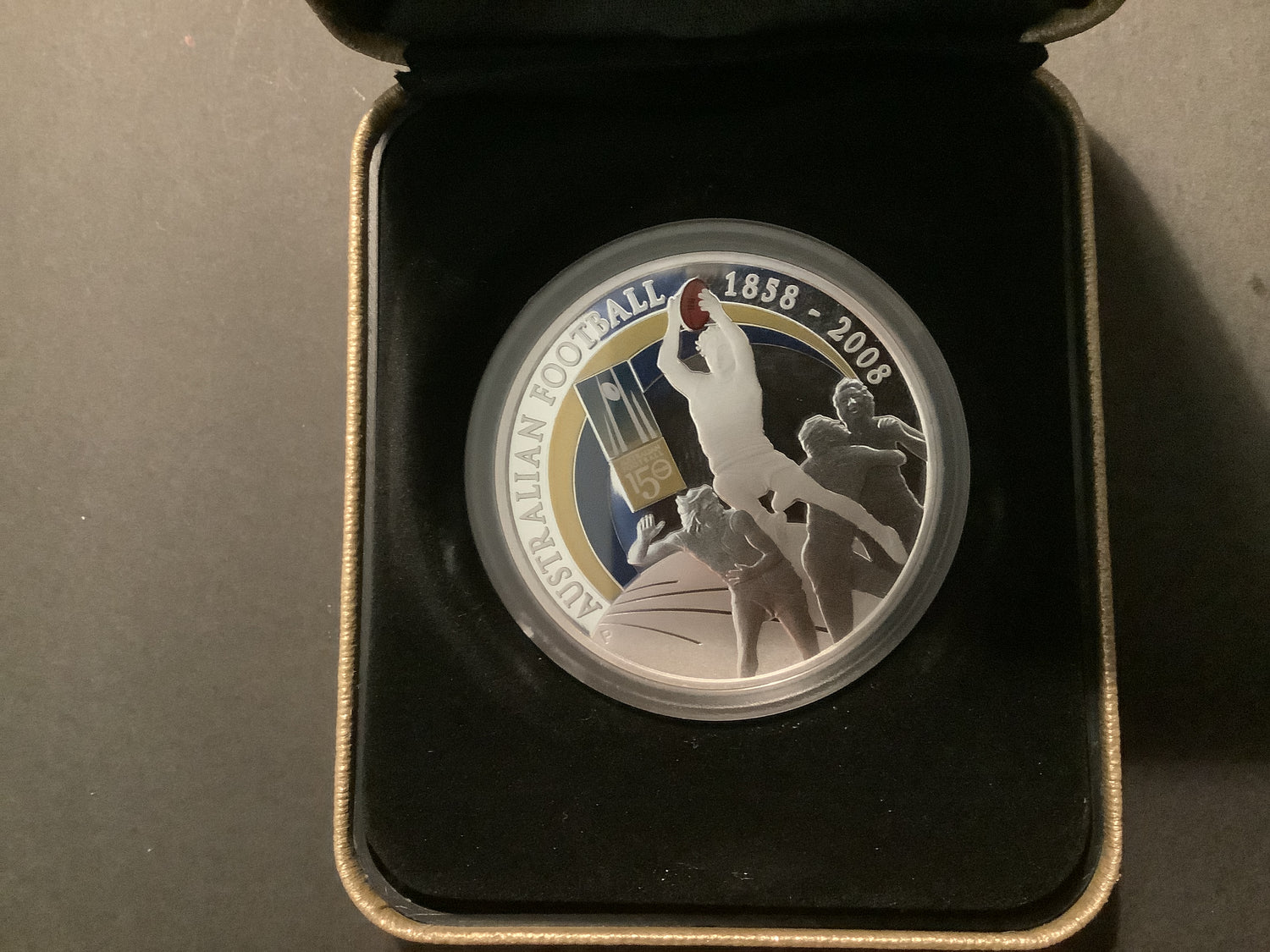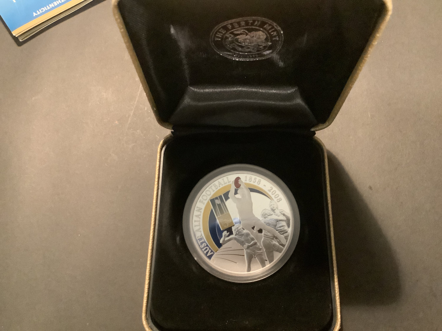 The 2008 $1 Australian Football 150 Years 1oz Silver Proof Coin commemorates the rich history and enduring legacy of Australian Football.
