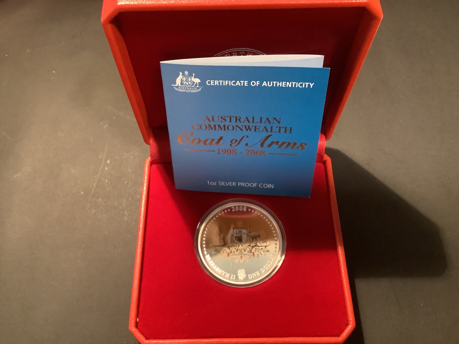 2008 Australian Commonwealth Coat of Arms $1 Silver Proof Coin 1908-2008. is backordered and will ship as soon as it is back in stock.