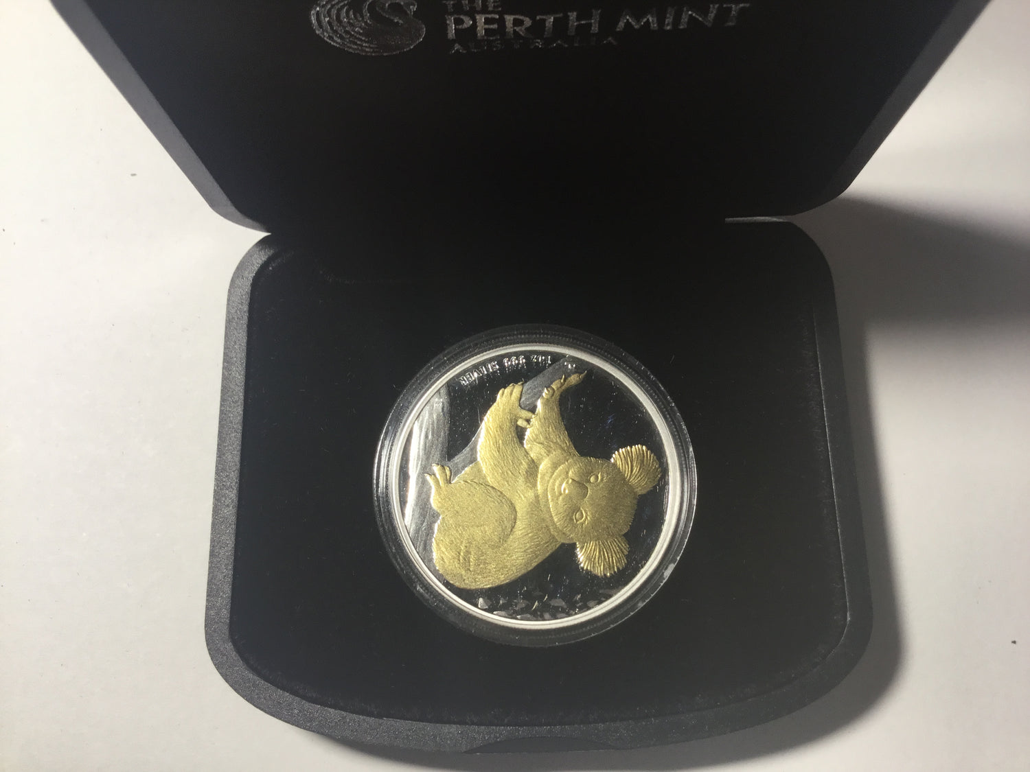 Struck from one ounce of fine silver, this coin is enhanced with selective gilding, highlighting the intricate details of the koala against a polished silver background.