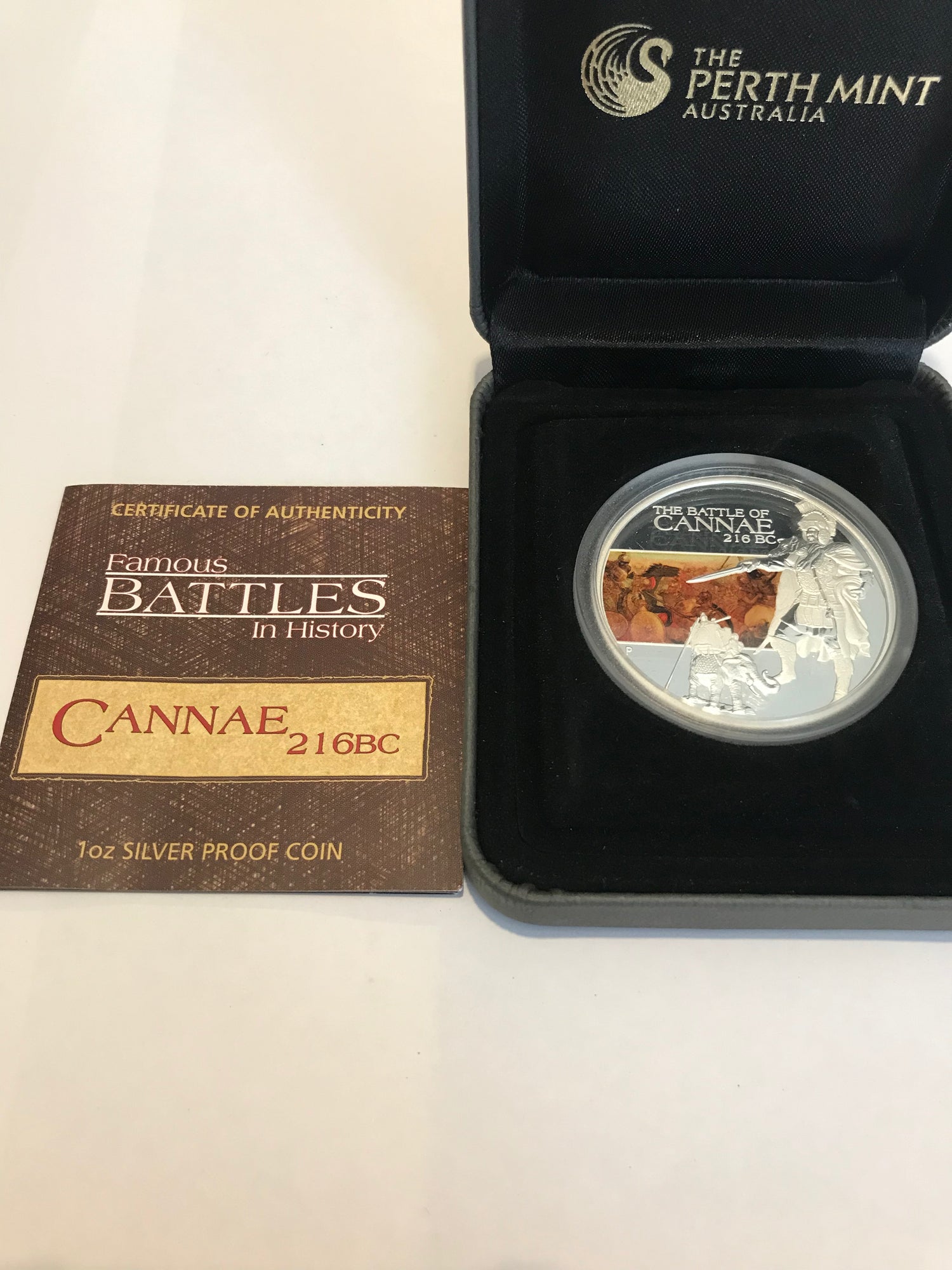 The 2009 $1 Famous Battles in History series commemorates the Battle of Cannae with a striking 1-ounce silver proof coin.