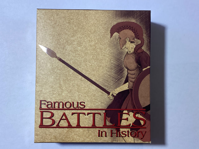 The reverse of the coin features a meticulously detailed depiction of Spartan warriors in full battle gear, capturing the valor and determination of these legendary fighters. The high-quality proof finish enhances the intricate design, giving it a stunning, mirror-like surface that accentuates every detail. Surrounding the central image are the inscriptions "Thermopylae 480BC" and "Famous Battles in History," emphasising the historical significance of this epic battle.