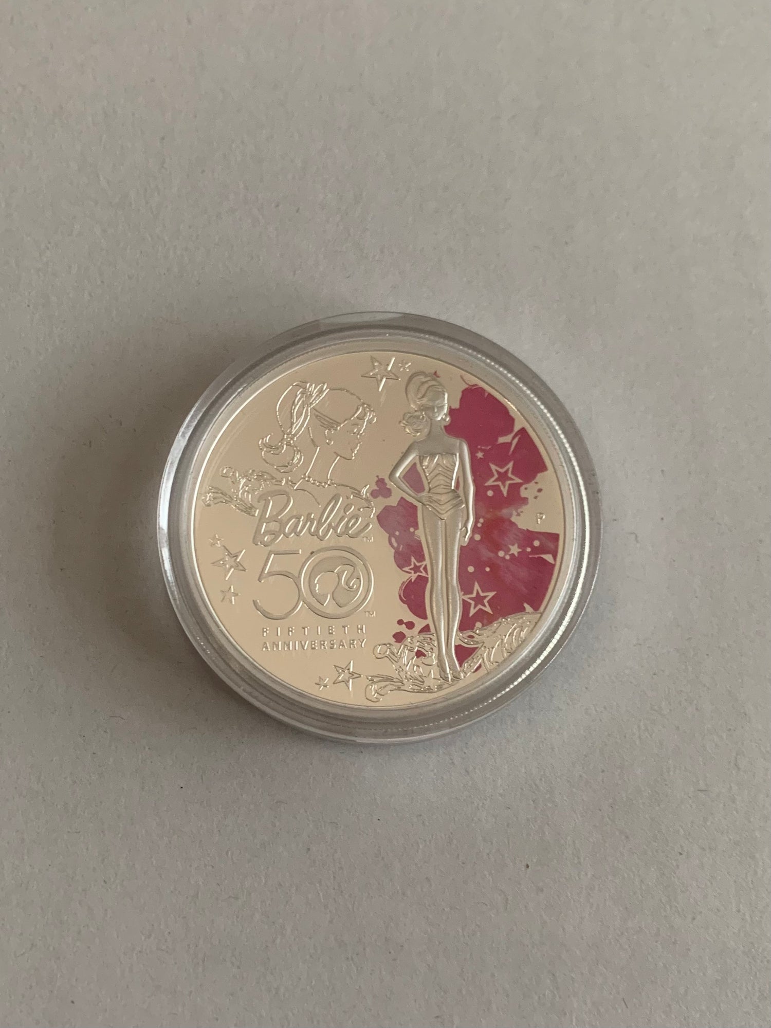 Celebrate an icon with the Barbie 50th Anniversary 1oz Silver Commemorative Coin.