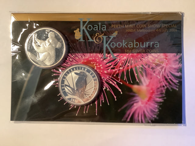 Released as part of the 2009 ANDA Melbourne show, this 2 coin set features a one-ounce silver Koala and a one-ounce silver Kookaburra coin.