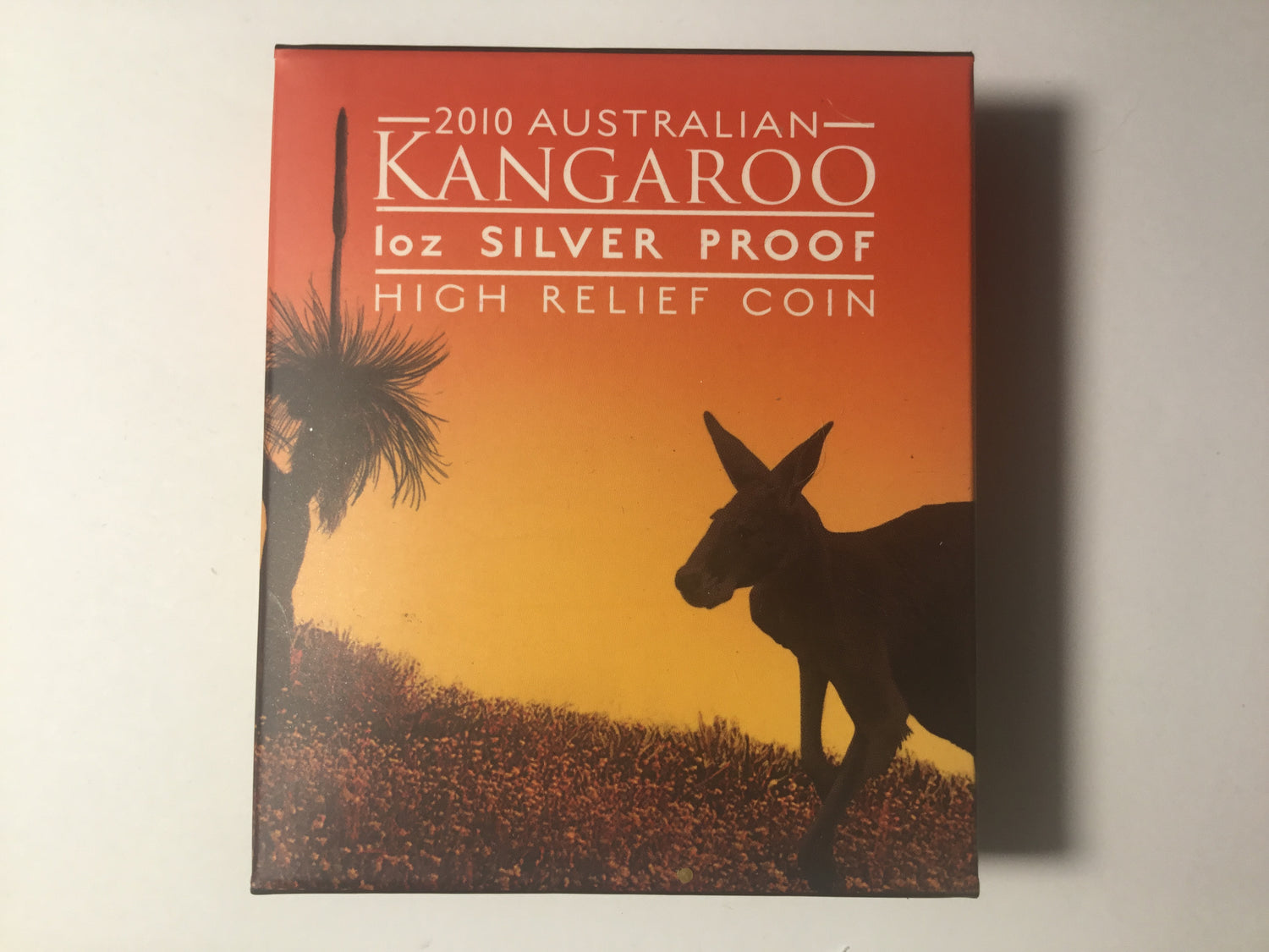 2010 $1 Australian Kangaroo. 1oz Silver Proof High Relief Coin. is backordered and will ship as soon as it is back in stock.