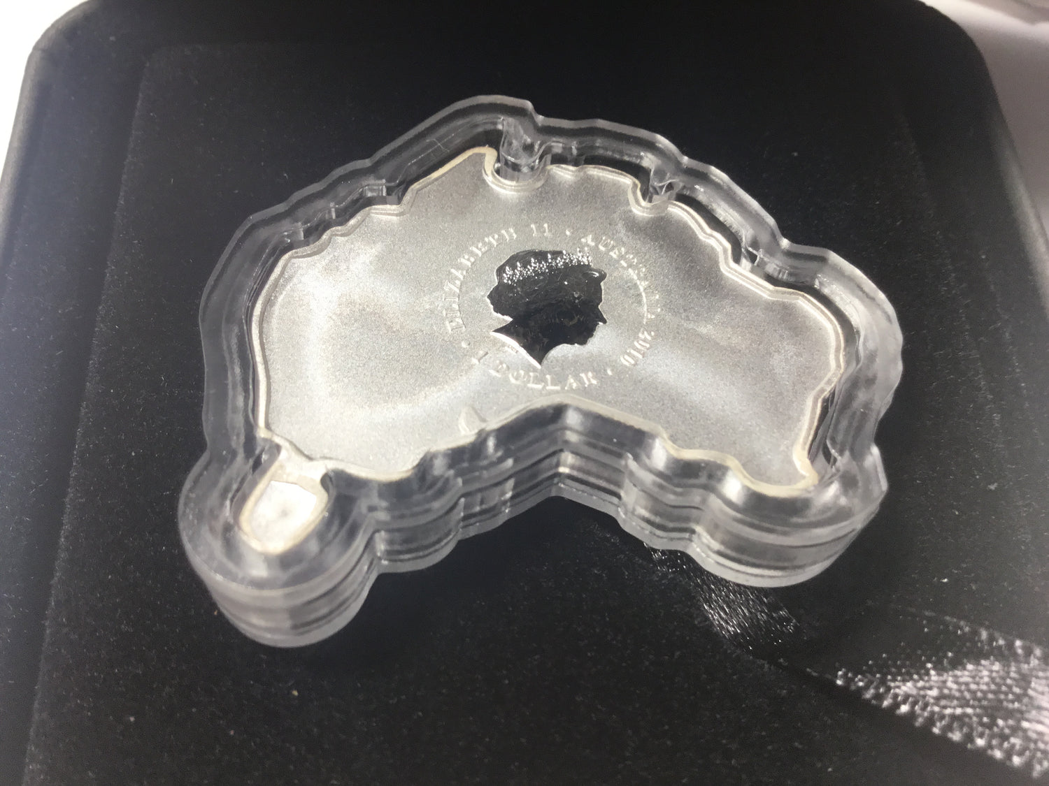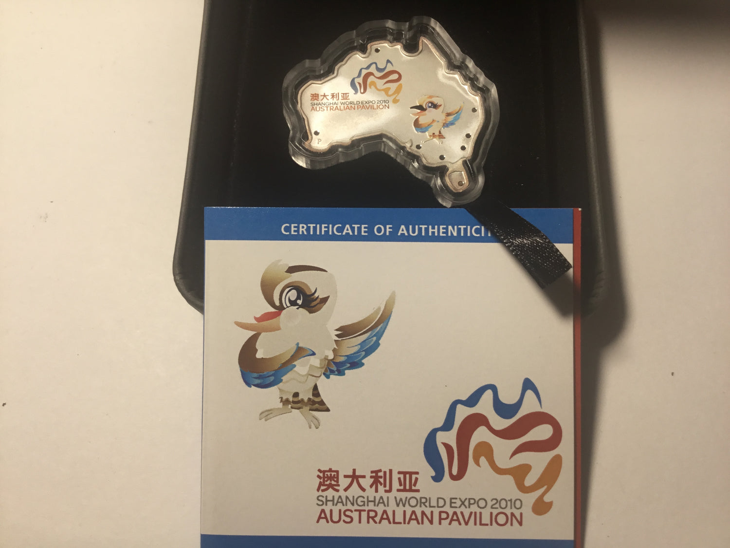 2010 $1 Australian Kookaburra. 1oz Silver Map Shaped Coin. Shanghai World Expo.