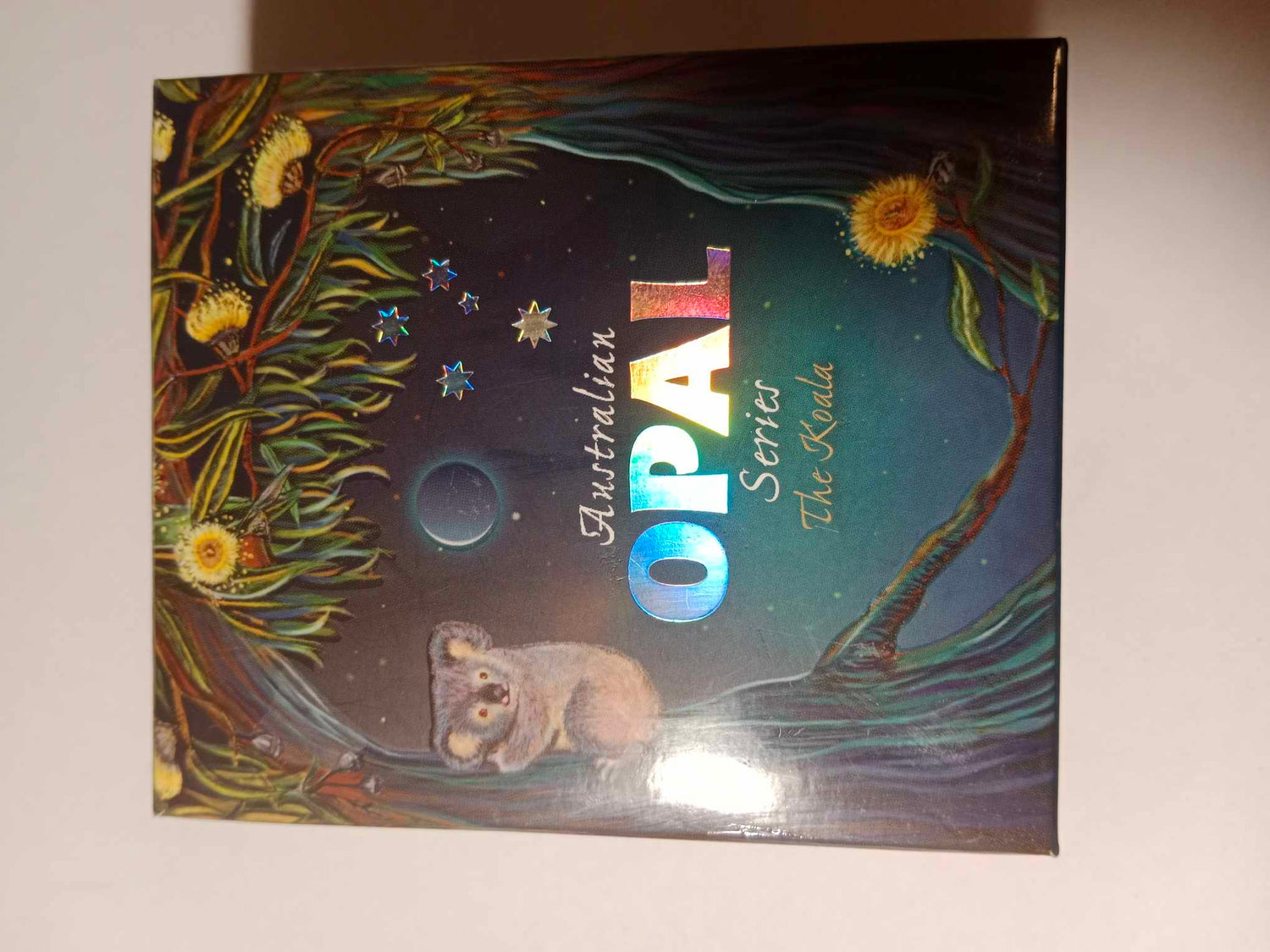 Crafted from 99.9% pure silver, this coin showcases a stunning Koala design adorned with an exquisite Australian opal insert. The opal, renowned for its iridescent play of colours, adds a unique and captivating element to the coin's artwork, highlighting the Koala in its native eucalyptus habitat.