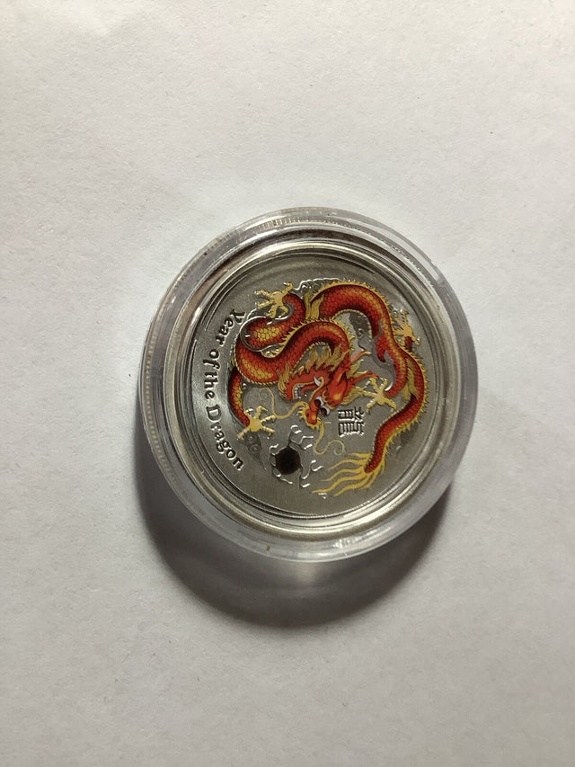 2012 50c Year of the Dragon 1/2oz Red Coloured Silver Coin in Capsule