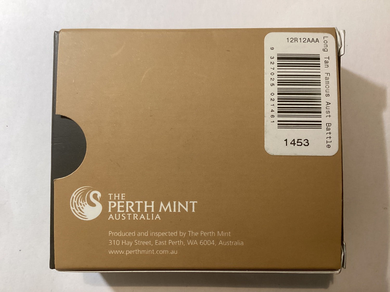 2012 $1 Famous Battles - Long Tan 1oz Silver Proof Coin is backordered and will ship as soon as it is back in stock.