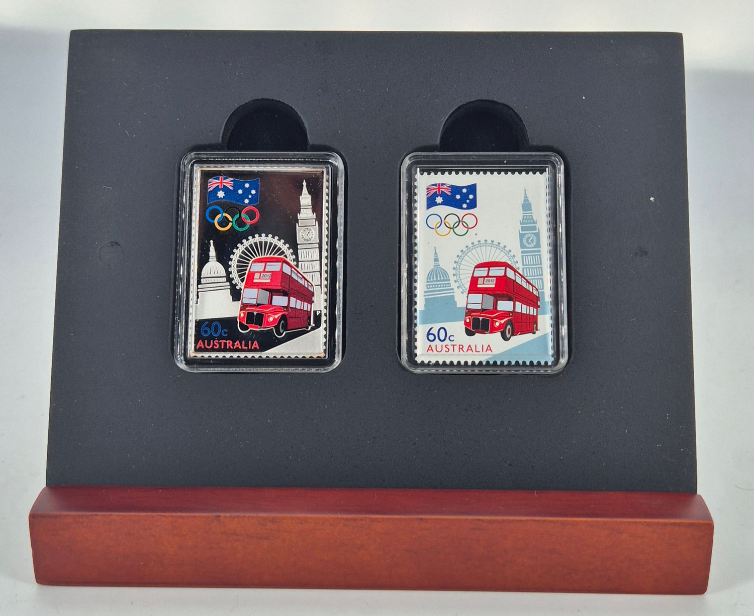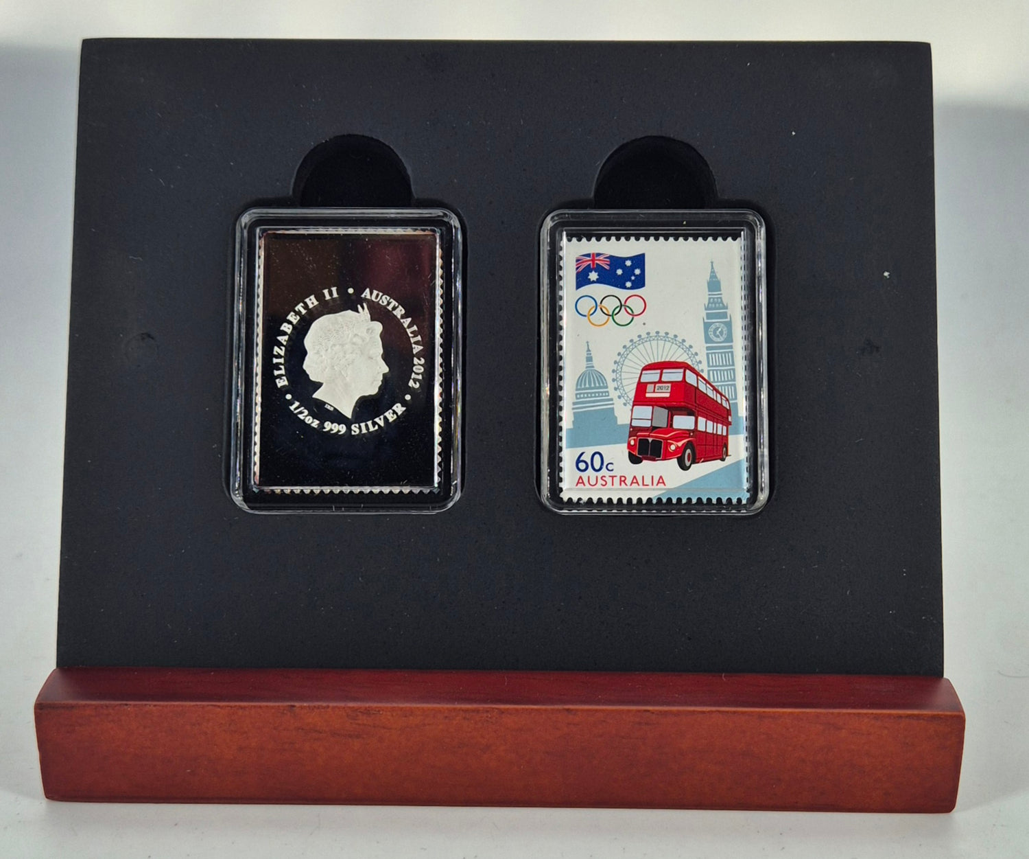 The coin replicates the stamp’s dynamic imagery and is struck from 99.9% pure silver in stunning proof quality by the Perth Mint. Officially issued as Australian legal tender, the coin is shaped like a postage stamp and features the Queen Elizabeth II effigy on the obverse. Presented in a display box with a numbered Certificate of Authenticity, this set is a standout addition for both numismatists and Olympic memorabilia collectors.