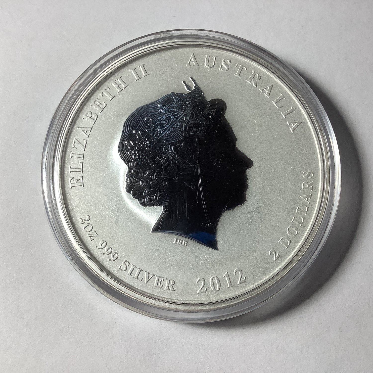 2012 Year of the Dragon 2 ounce silver coin in capsule