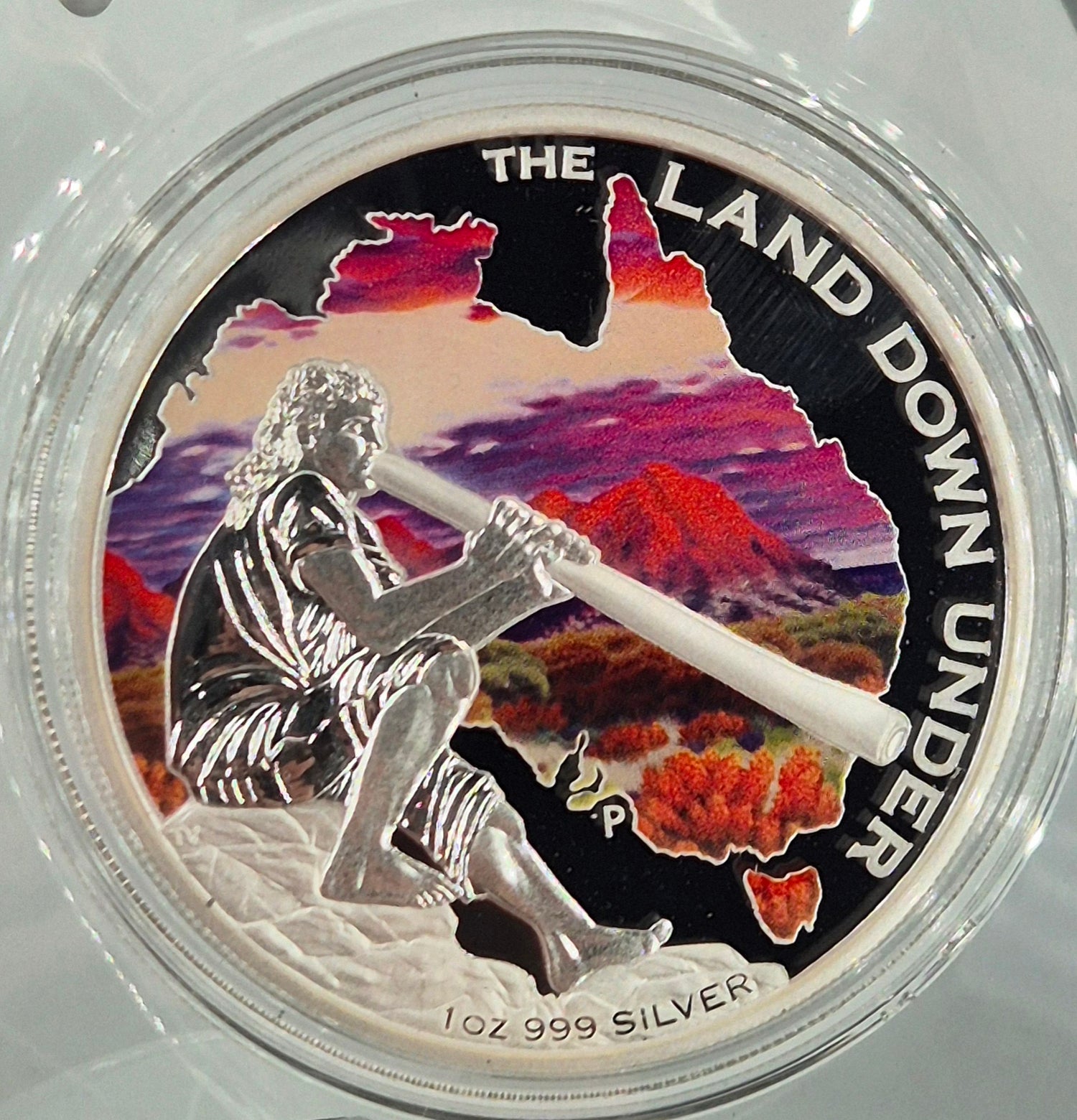 This 2013 1oz silver proof coin from the Perth Mint celebrates Australian culture through vivid design and frosted relief. Part of The Land Down Under series, it highlights national identity and heritage.