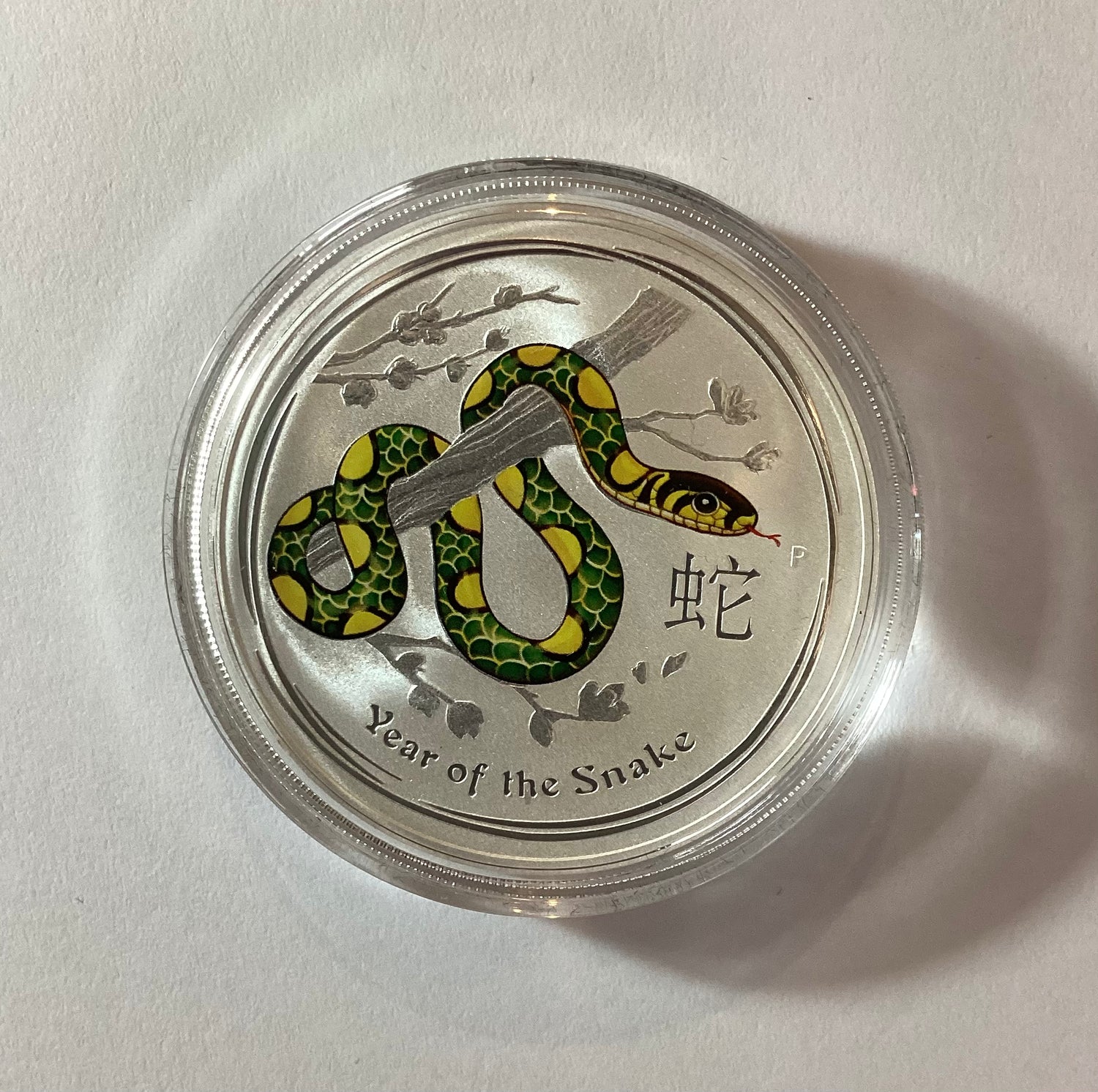 2013 Year of the Snake 1oz Coloured Silver Proof Coin. World Money Fair Edition