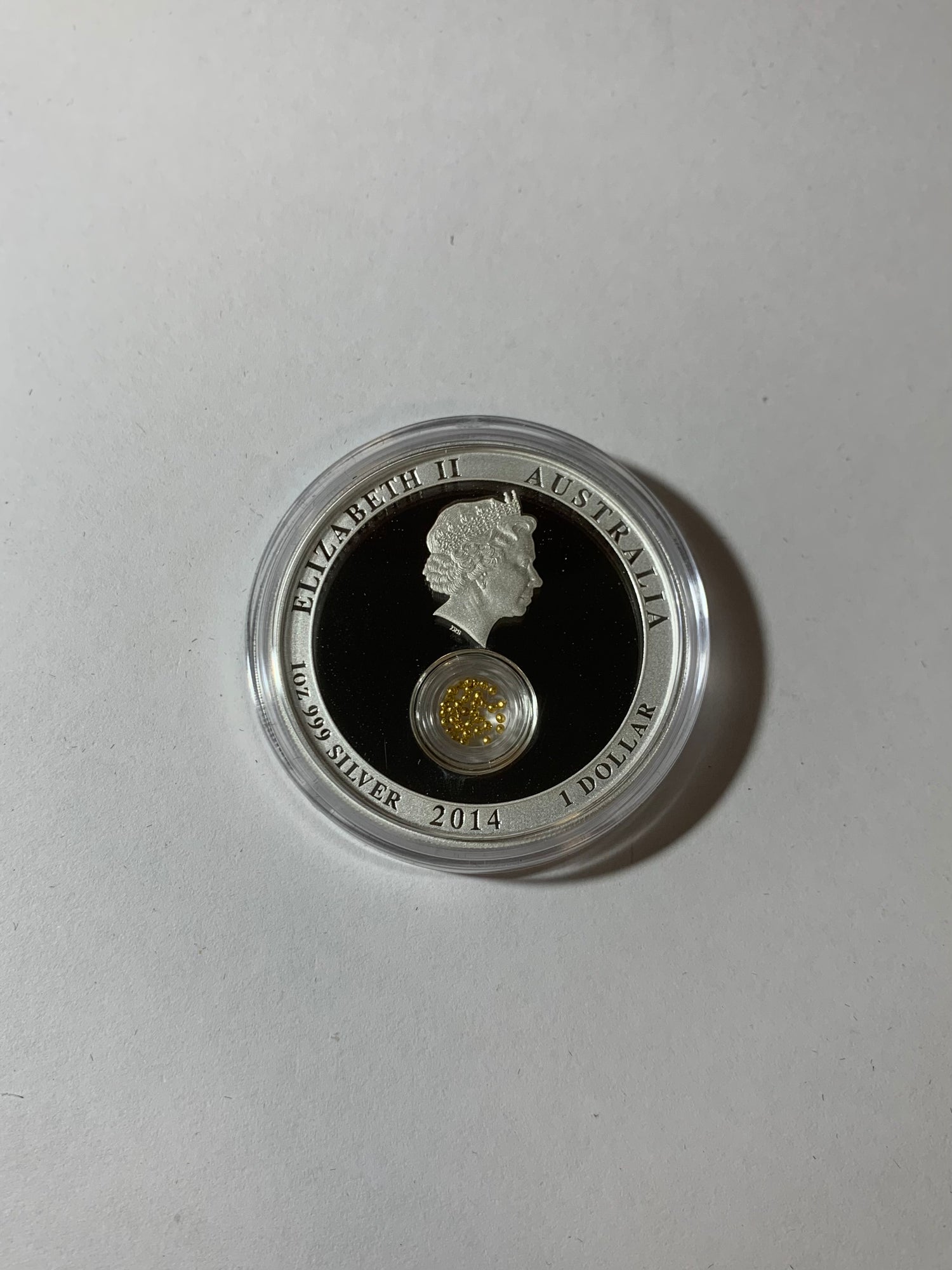 2014 $1 1oz Silver Proof Locket Coin. Treasures of the World. Australia. Gold. is backordered and will ship as soon as it is back in stock.