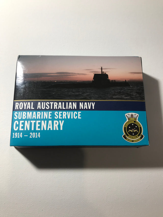 The 2014 Royal Australian Navy Submarine 1oz Silver Proof Coin and Badge Set commemorates the Royal Australian Navy's submarine service.